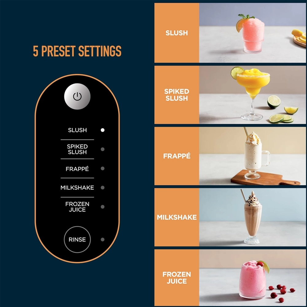 تقنية Rapid Chill لتحويل السوائل إلى سلاش منعش خلال 30 دقيقة فقط خمس برامج مسبقة الإعداد: سلاش، كوكتيل مجمّد، فرابيه، ميلك شيك، عصير مجمّد.