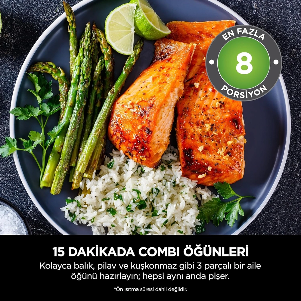 وجبات عائلية في 15 دقيقة: تكفي حتى 8 أشخاص باستخدام وظيفة وجبات Combi يشمل مقلاة Combi، صينية خبز، لوح قرمشة، ودليل وصفات مع أفكار وصفات متنوعة. مناسب لتحضير وجبات متنوعة من الإفطار حتى العشاء باستخدام جهاز واحد.