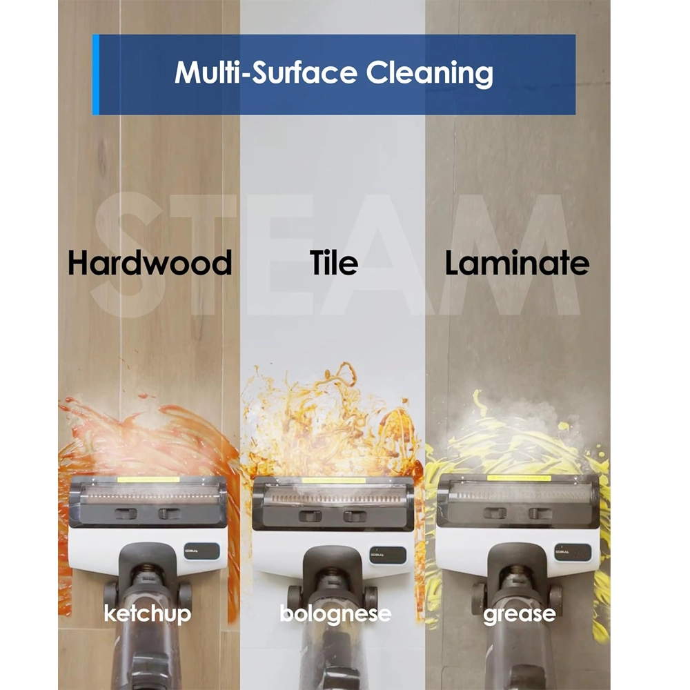 | 3 في 1 | شفط + مسح + بخار يجمع بين مكنسة وممسحة وجهاز بخار في نفس الوقت، لتنظيف شامل وسريع للأرضيات الصلبة. |