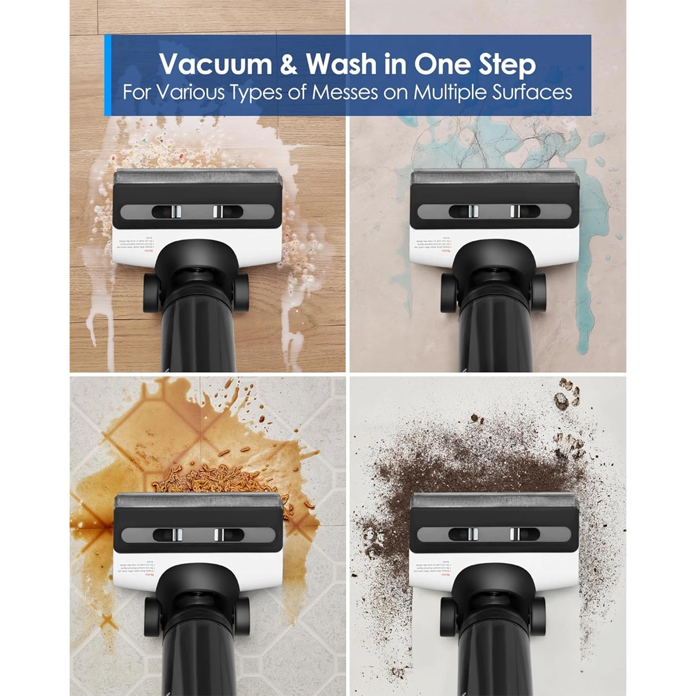 | - تنظيف شامل | شفط + مسح + تجفيف تزيل الأوساخ الجافة والسائلة حتى البقع اللاصقة بتمريرة واحدة، لتنظيف أسرع وأكثر راحة. |
