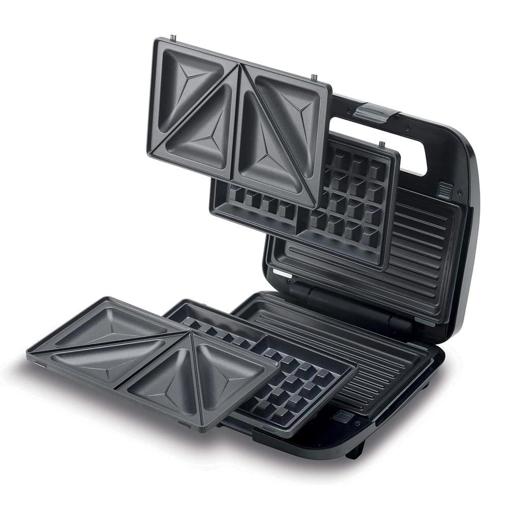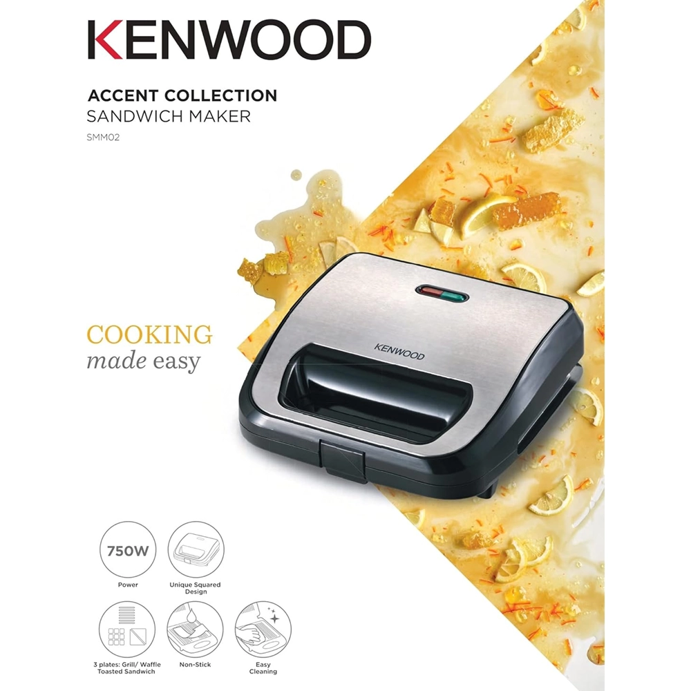 Kenwood SMM02 Sandwich Maker 3×1 | جهاز سندوتشات ووافل وشواية بقدرة 750 واط – أسود
