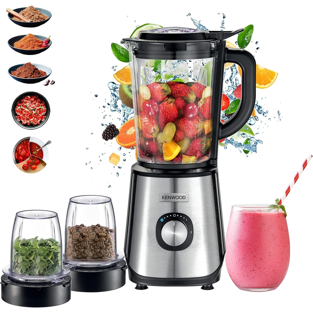 خلاط زجاج من كينوود 2 لتر مع مطحنة وقطّاعة ووظيفة تكسير الثلج
