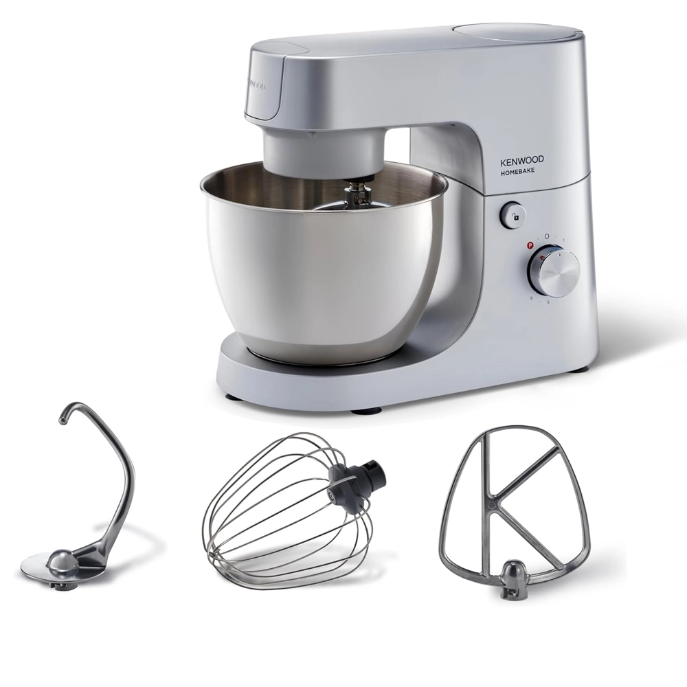ملحقات متعددة – خطاف العجن للعجائن الثقيلة، مضرب K للكعك والبسكويت، وخافق البيض لخفق الكريمة والبيض.