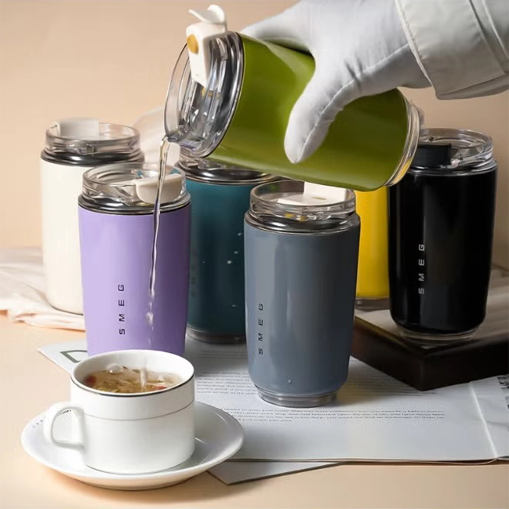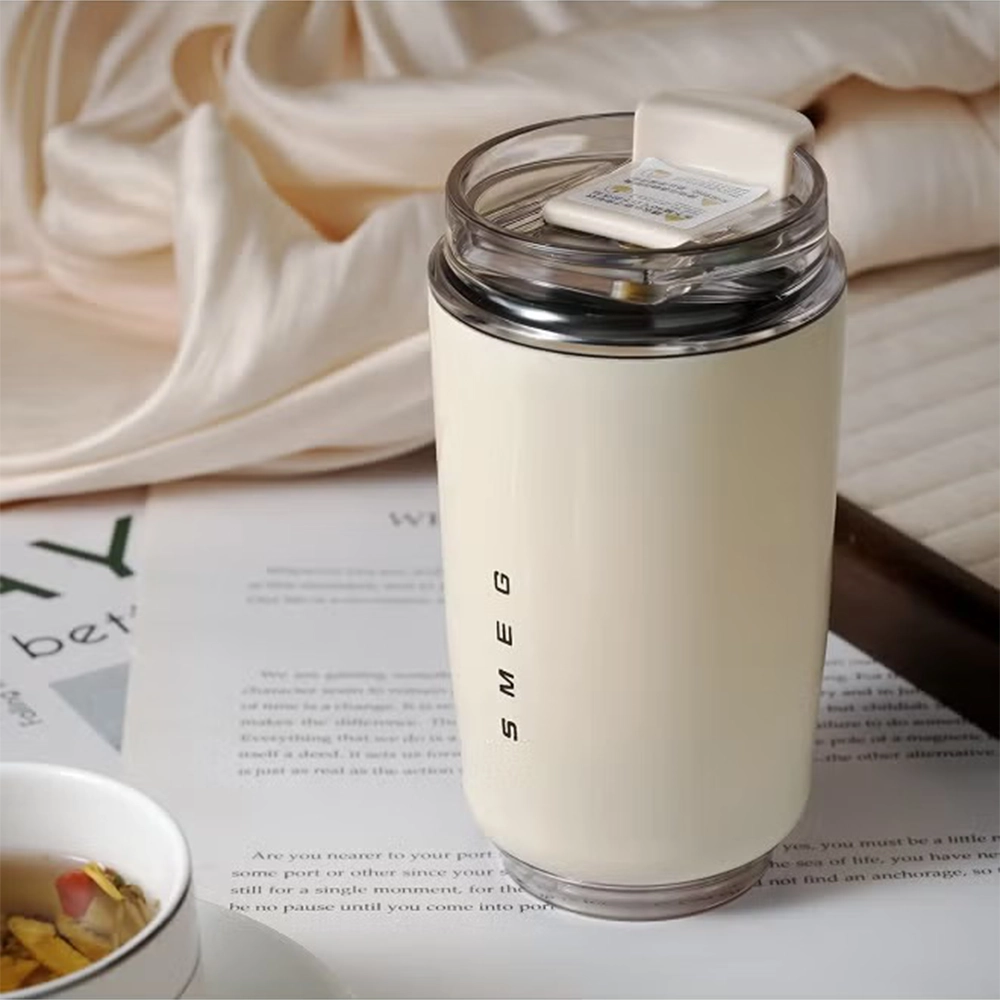 كوب قهوة للسفر من سميج - ستانلس ستيل 320 مل – عازل للحرارة مع غطاء مقاوم للتسرب – أبيض