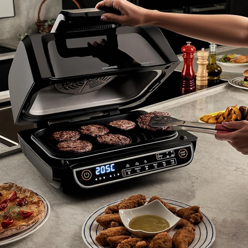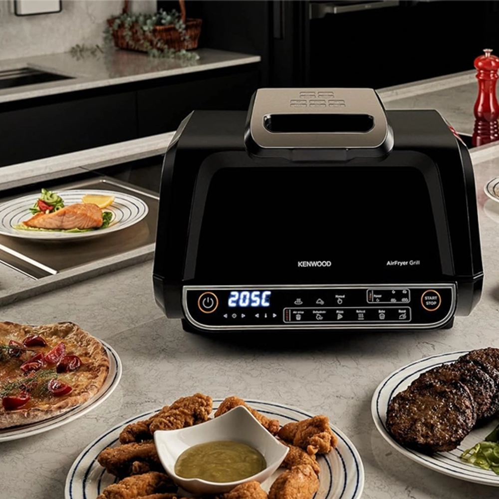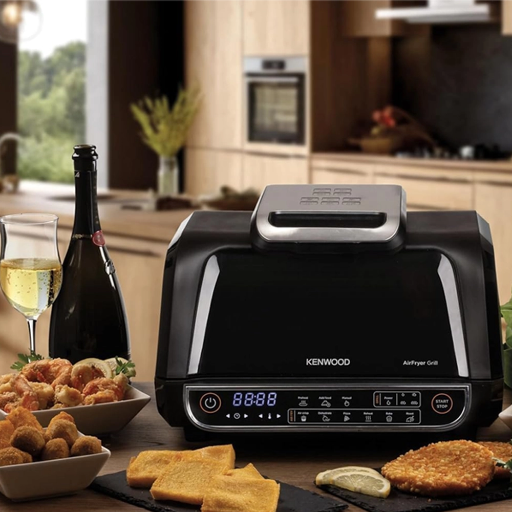 قلاية هوائية وشواية كينوود 8 لتر – 2×1 بسلة XXXL و4 مستويات شواء و8 برامج طهي
