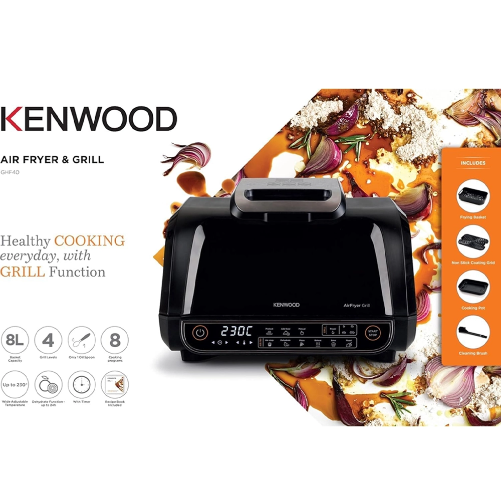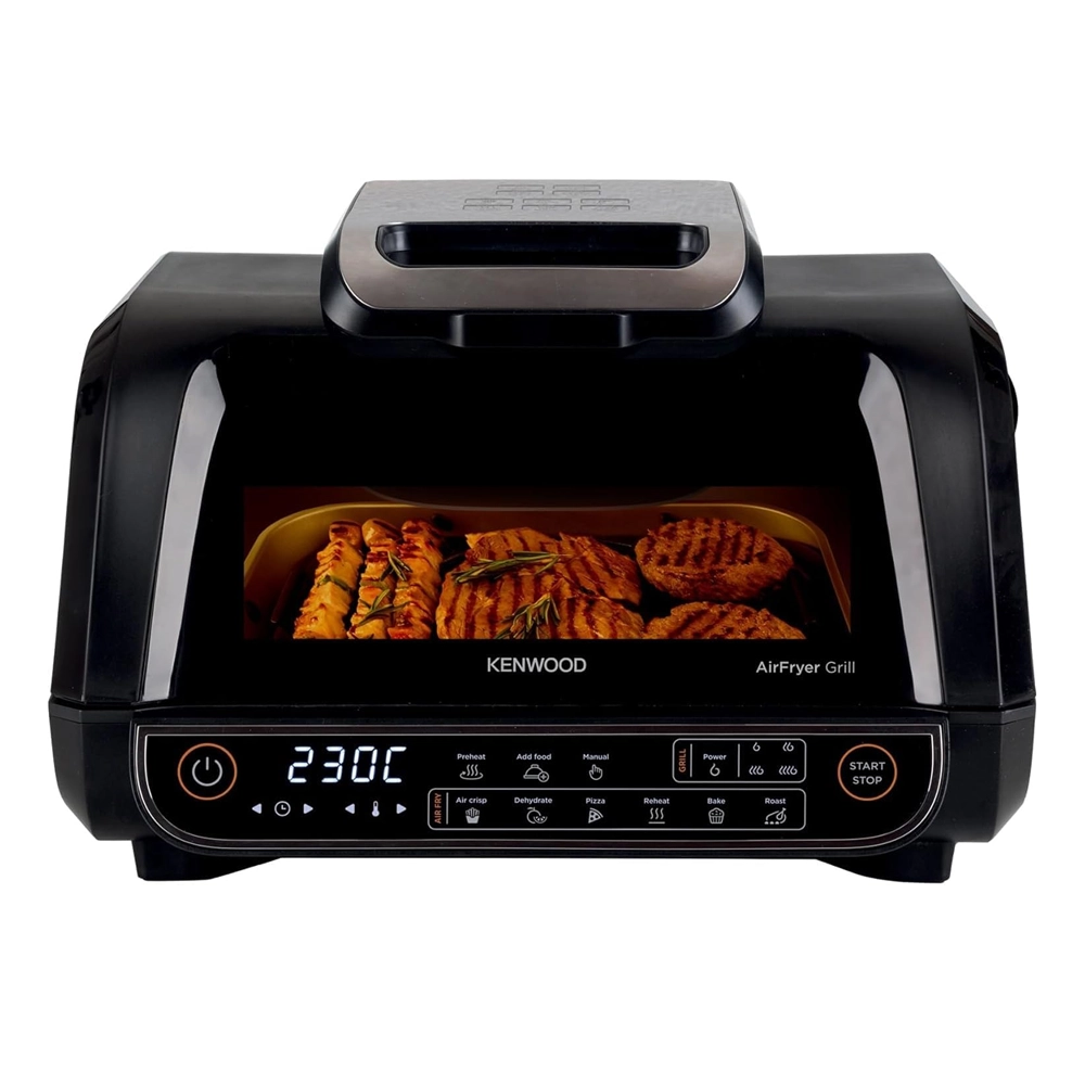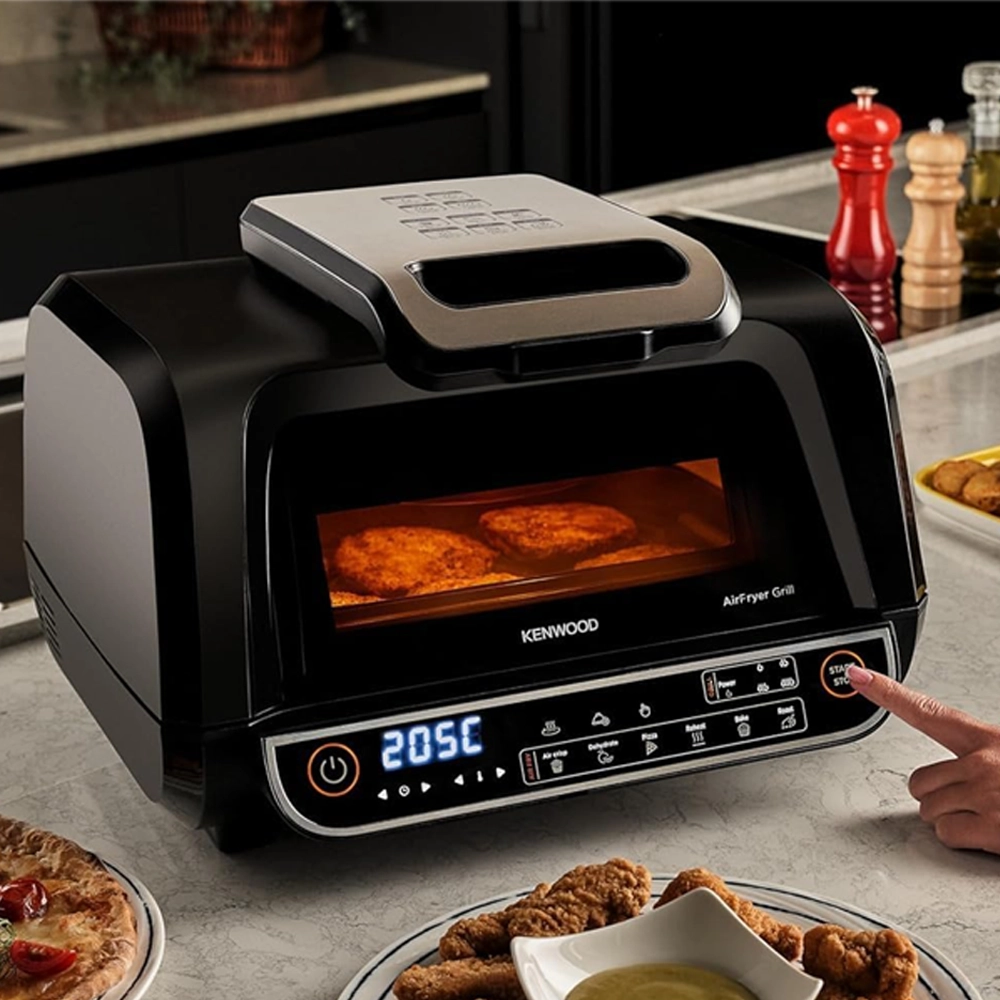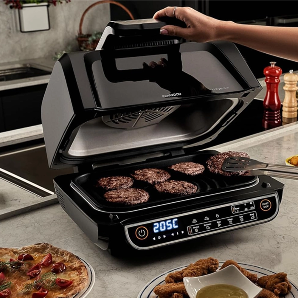 قلاية هوائية وشواية كينوود 8 لتر – 2×1 بسلة XXXL و4 مستويات شواء و8 برامج طهي
