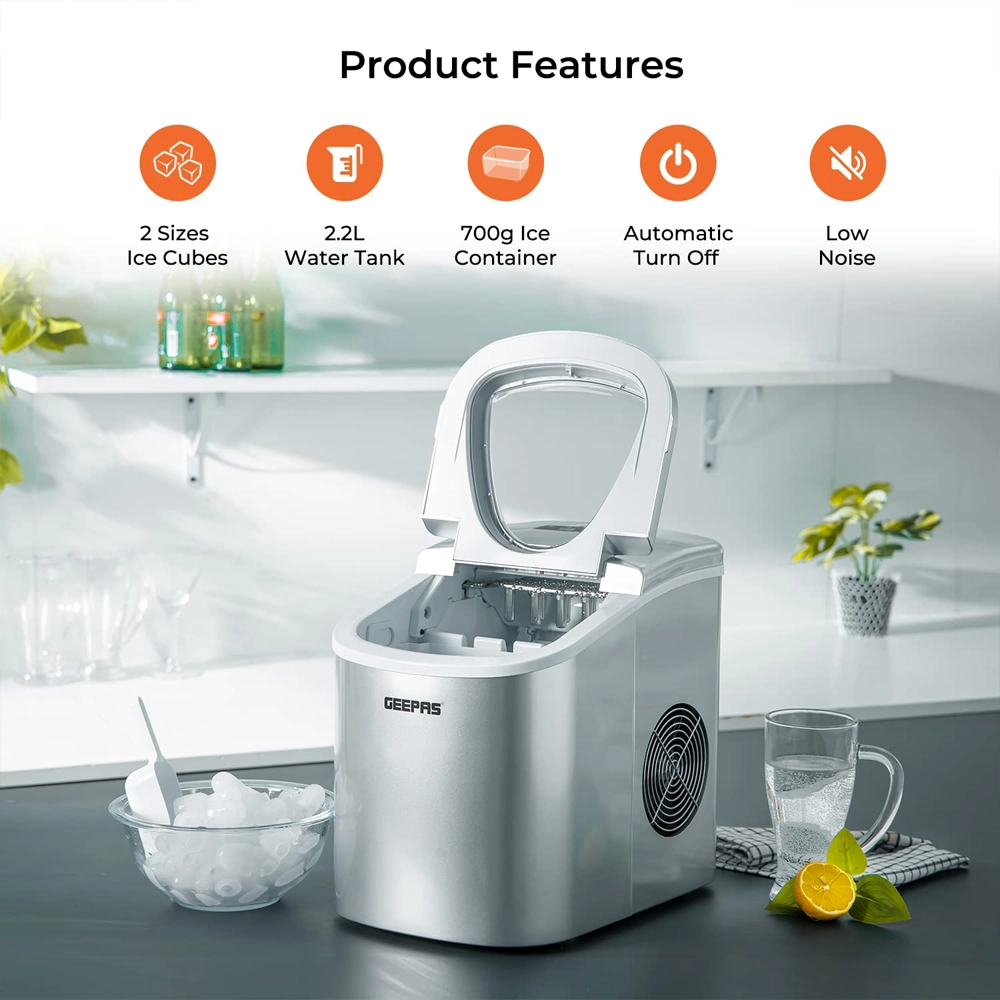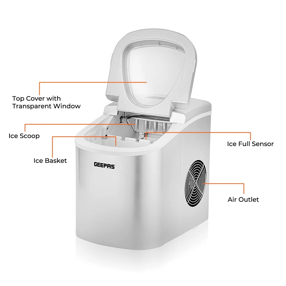 صانعة الثلج جيباس الأوتوماتيكية (GIM63015) - تنتج 12 كجم يوميًا بحجمين مختلفين وتقنية الغاز البيئي