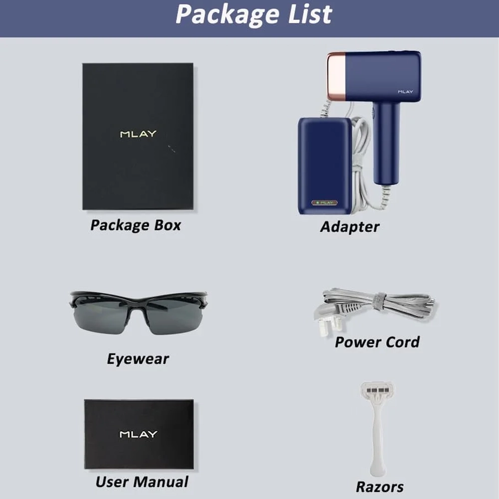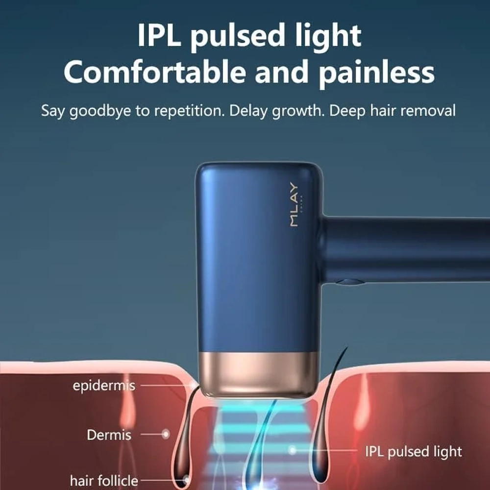جهاز إزالة الشعر IPL ملاي T14A – نظام تبريد بالثلج – 500,000 ومضة – عدسات قابلة للاستبدال – لون أزرق