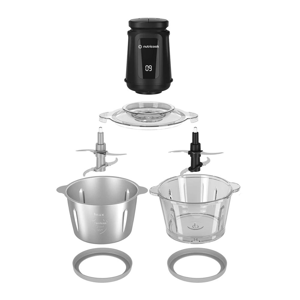 كبة نوتريكوك XXL زجاج 1.2 لتر – 500 واط – سرعتين + نبض – سكاكين ستانلس ستيل – لون أسود