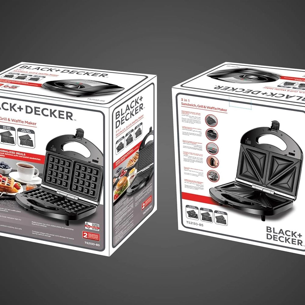 صانعة ساندويتش ووافل وشواية بلاك آند ديكر 3×1 – 780 واط – أسود | TS2130-B5