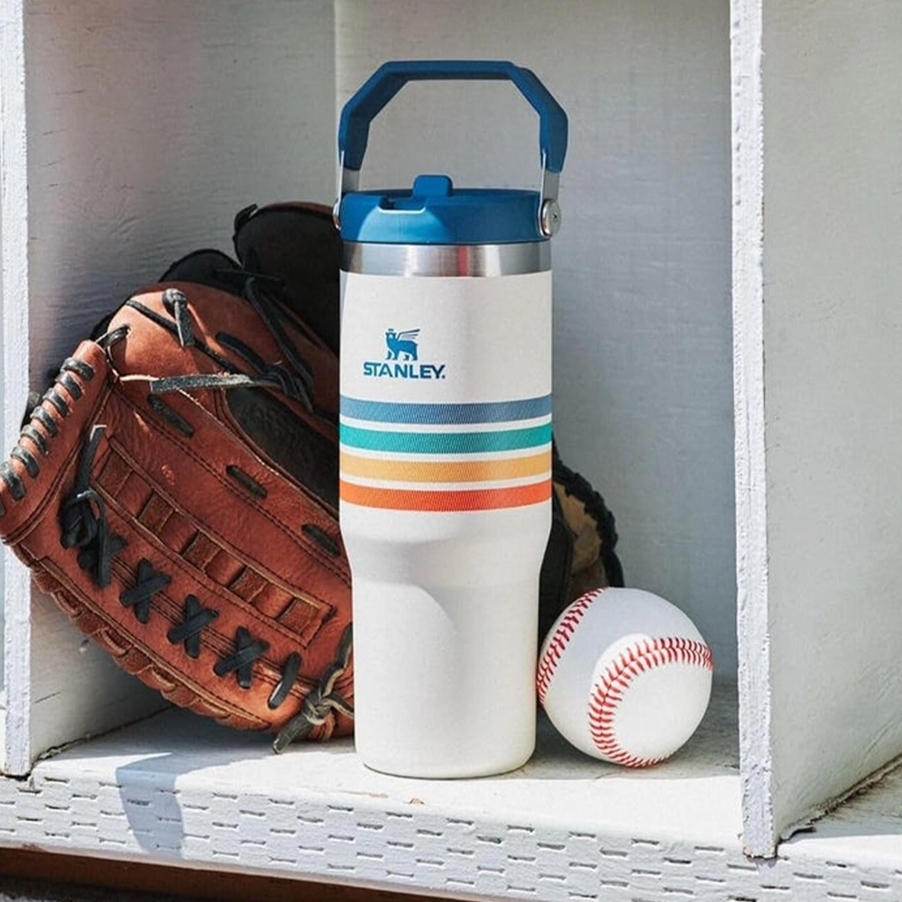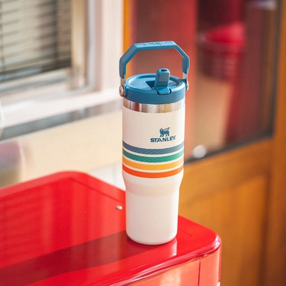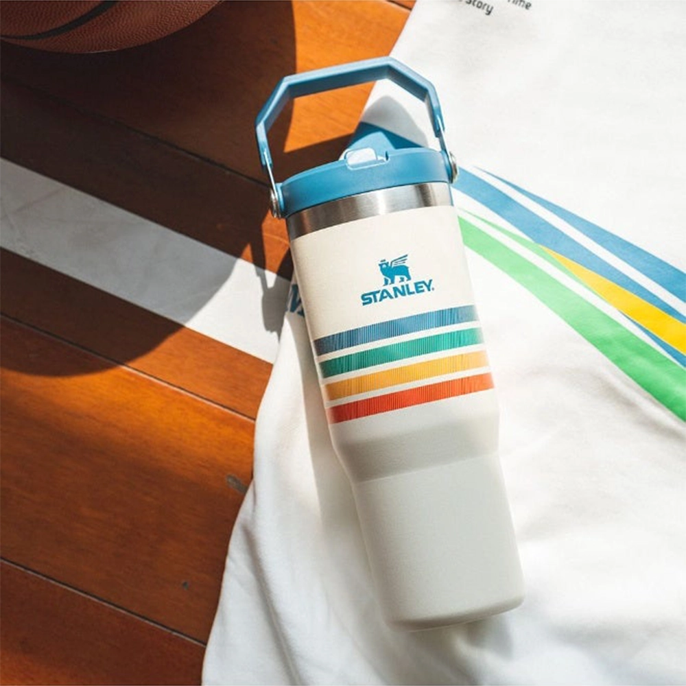 زجاجة ستانلي IceFlow من الفولاذ المقاوم للصدأ – 30 أونصة – تصميم مخطط كريمي