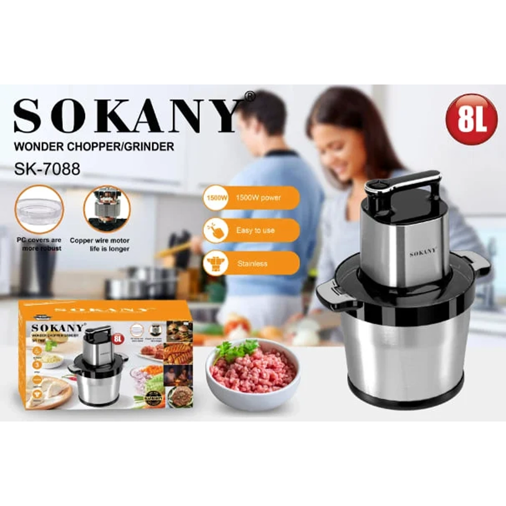 كبه سوكاني كهربائية 8 لتر – 1500 واط – 3 سرعات – 6 شفرات | Sokany