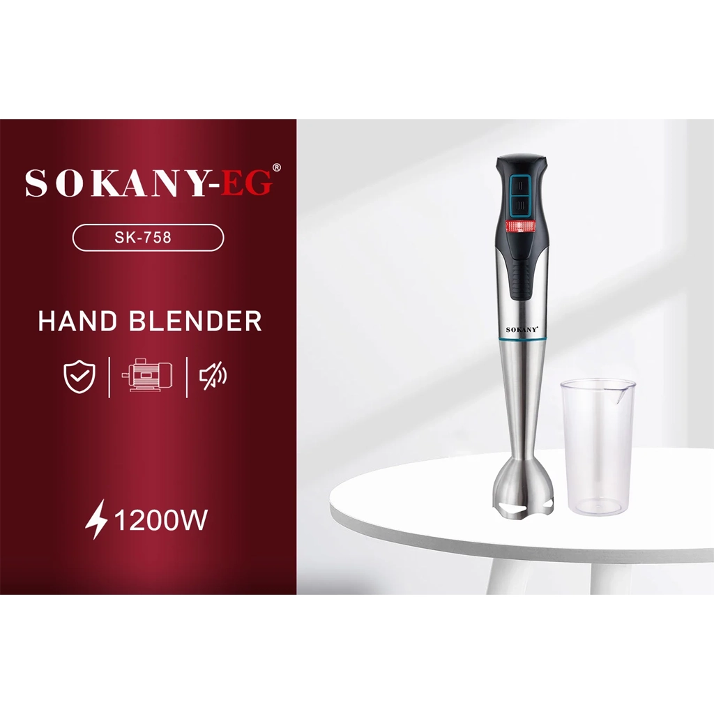 هاند بلندر سوكاني 2×1 استانلس ستيل مع كوب – 1200 واط – سرعتين | Sokany SK-758