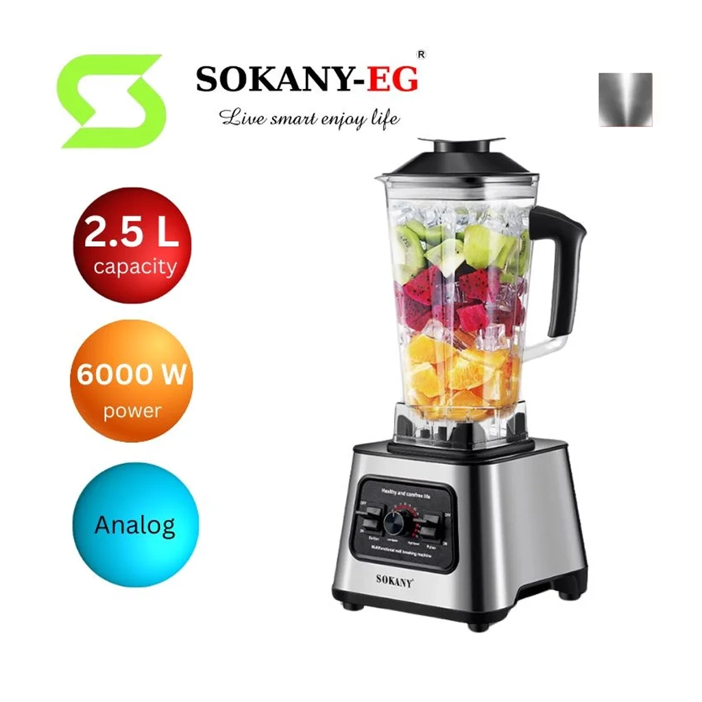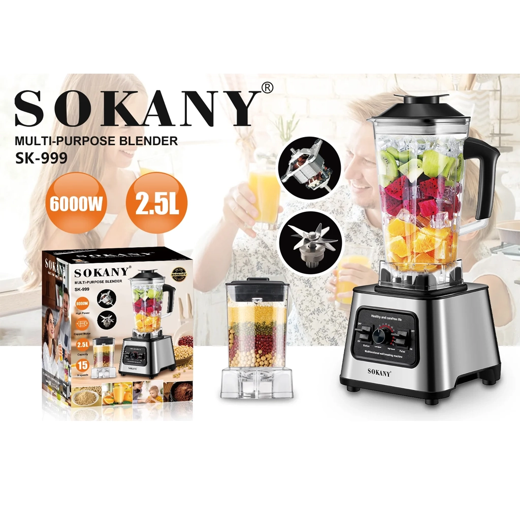 خلاط سوكاني 2×1 استانلس ستيل + مطحنة – 6000 واط – 2.5 لتر – 9 سرعات | Sokany SK-999N