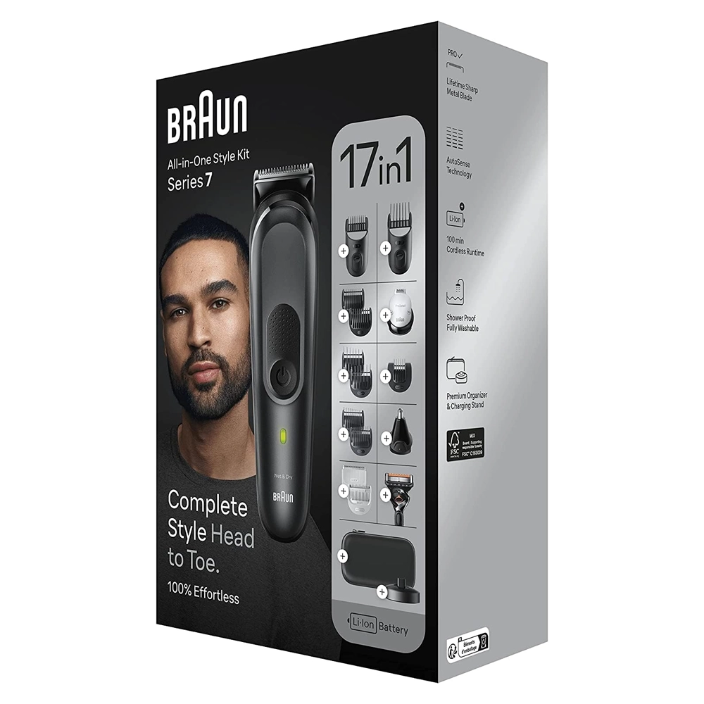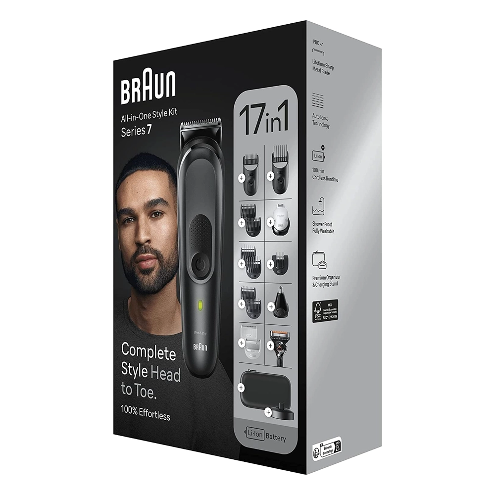 ماكينة حلاقة براون MGK7491 Series 7 – مجموعة تصفيف متكاملة 17 في 1 للرجال