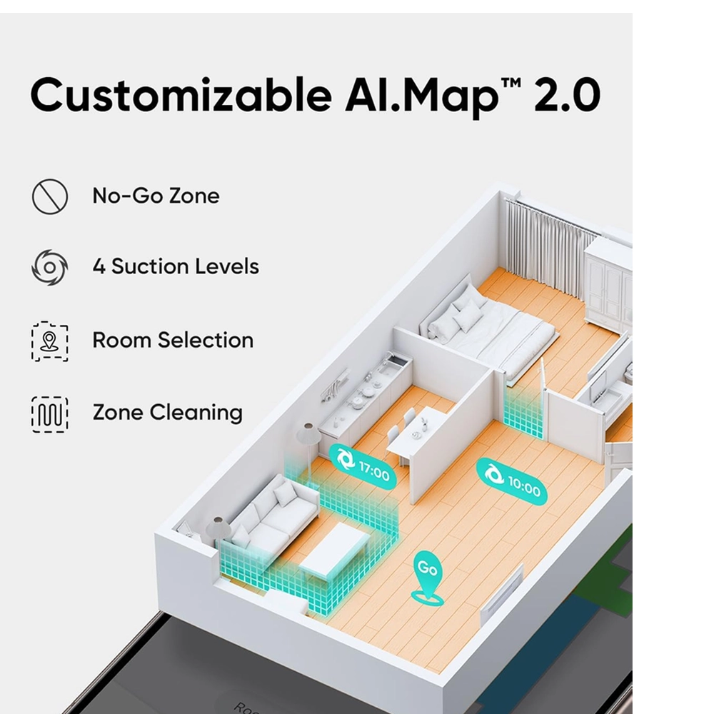 | خريطة الذكاء الصناعي 2.0 قابلة للتخصيص | تحديد غرف محددة، مناطق محظورة، خرائط متعددة للطوابق |