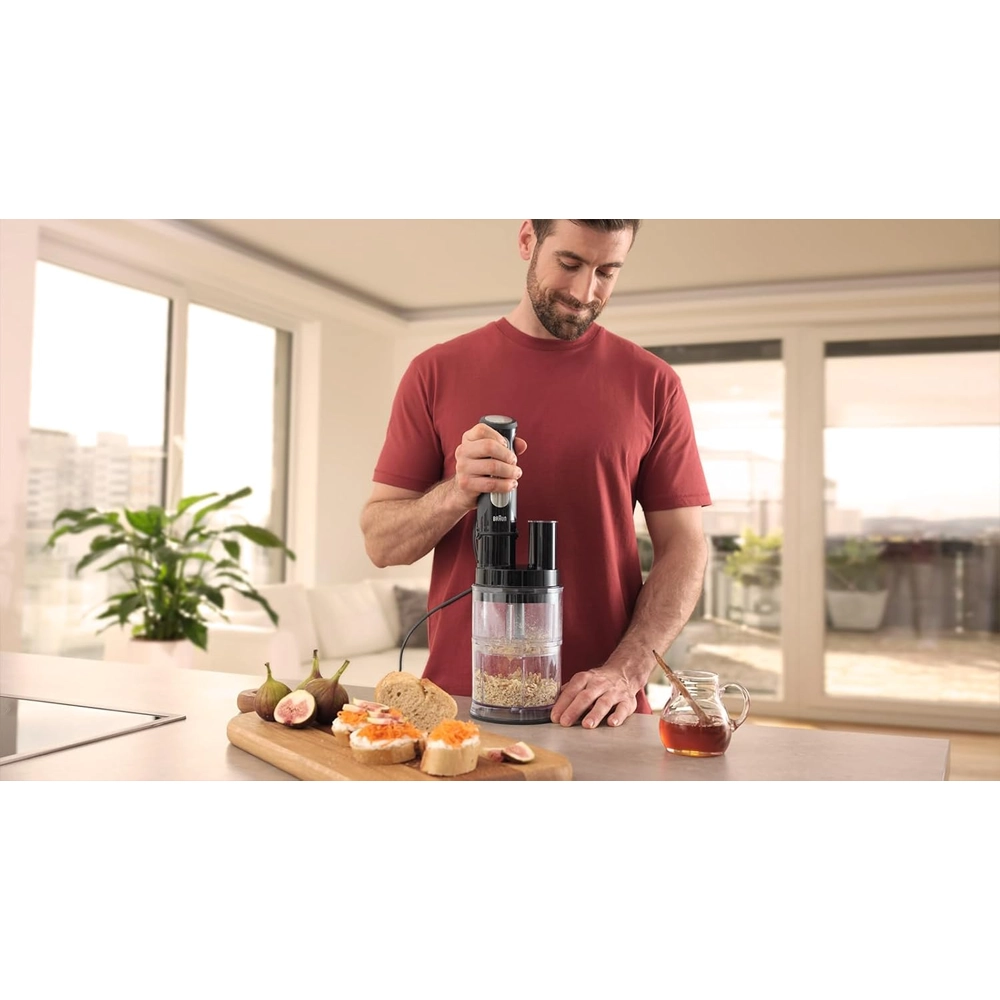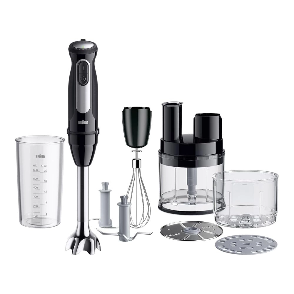 | يشمل محضر طعام صغير، مفرمة، مضرب خفق، وسكين سحق الثلج | |